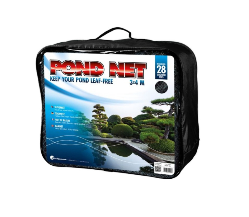 Het afdeknet voorkomt het inwaaien van bladeren en takken in het najaar. Hierdoor is er minder kans op algengroei in het voorjaar en het vergemakkelijkt het onderhoud van de vijver.